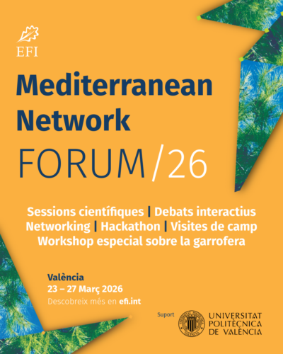 La Universitat Politècnica de València (UPV) será una de las sedes del EFI Mediterranean Network Forum 2026, que se celebrará del 23 al 27 de marzo de 2026, organizado por el Instituto Forestal Europeo (EFI).